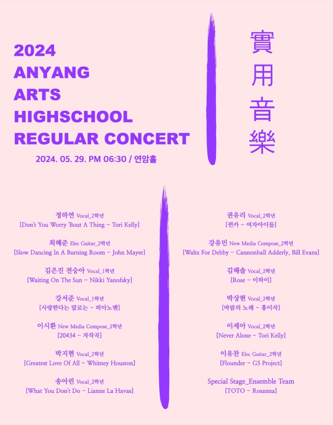 2024Çг⵵ Á¦ 5ȸ ½Ç¿ëÀ½¾ÇÀü°ø Á¤±â¿¬ÁÖȸ¸¦ °³ÃÖÇÕ´Ï´Ù.