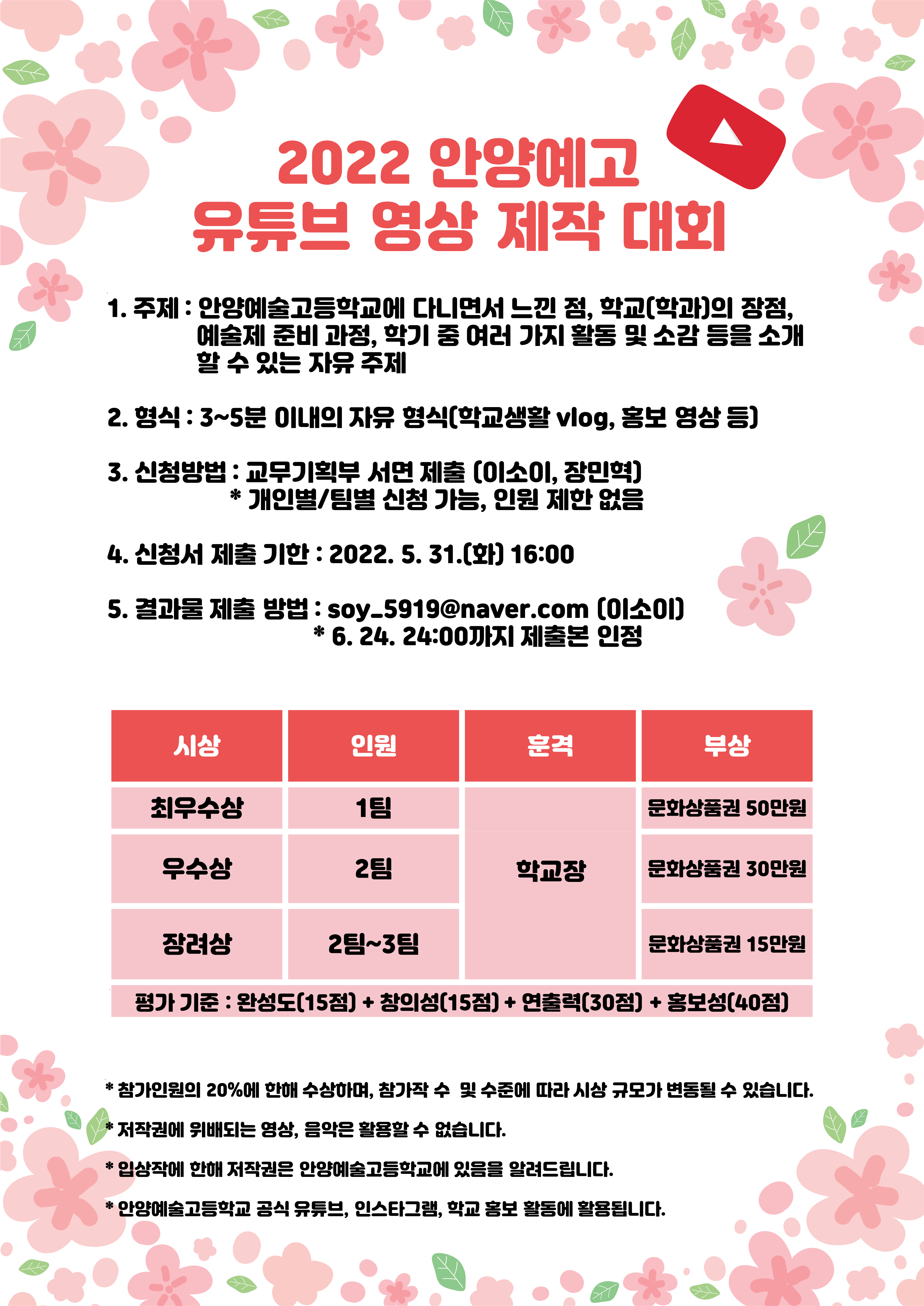 2022 ¾È¾ç¿¹°í À¯Æ©ºê ¿µ»ó Á¦ÀÛ ´ëȸ ¾È³»¿Í °èȹ¼­ ¾ç½ÄÀ» ¿Ã¸³´Ï´Ù.