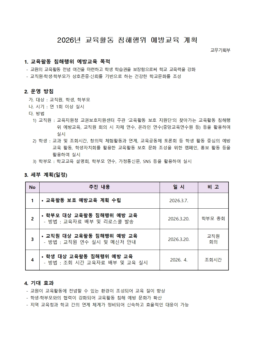 2026Çг⵵ ±³À°È°µ¿ Ä§ÇØÇàÀ§ ¿¹¹æ ±³À° °èȹ
