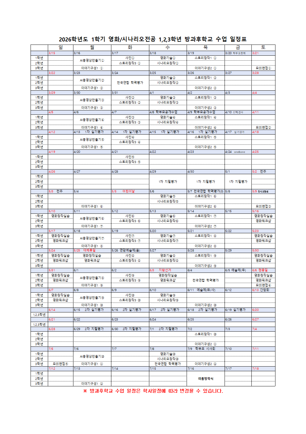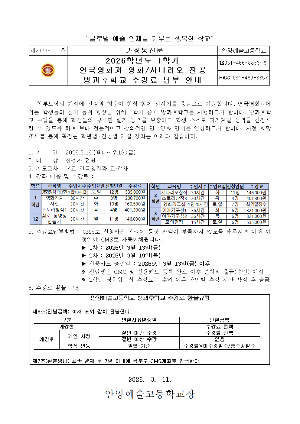 2026Çг⵵ 1Çб⠿¬±Ø¿µÈ­°ú ¿µÈ­/½Ã³ª¸®¿À Àü°ø ¹æ°úÈÄÇб³ ¼ö°­·á ³³ºÎ ¾È³»
