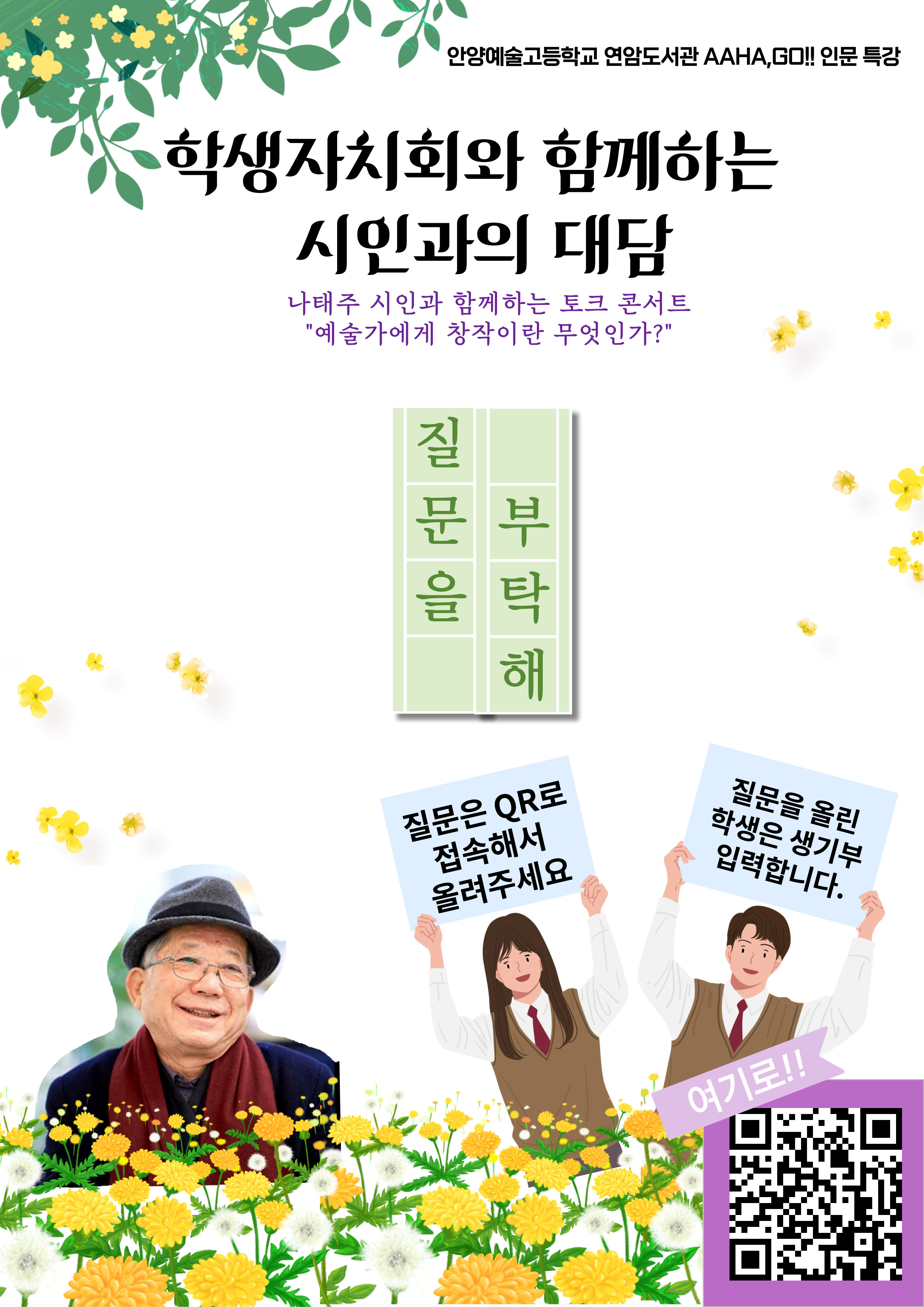 ¾È¾ç¿¹¼ú°íµîÇб³(±³Àå Ȳ¿µ³²)´Â ¿À´Ã(3ÀÏ) ¿ÀÈÄ 1½Ã ½Ã ‘Ç®²É’À¸·Î À¯¸íÇÑ ³ªÅÂÁÖ ½ÃÀÎÀ» ÃÊÃ»ÇØ ‘¿¹¼ú°¡¿¡°Ô âÀÛÀ̶õ ¹«¾ùÀΰ¡’¶ó´Â ÁÖÁ¦·Î Àι®ÇРƯ°À» °³ÃÖÇÑ´Ù°í ¹àÇû´Ù.