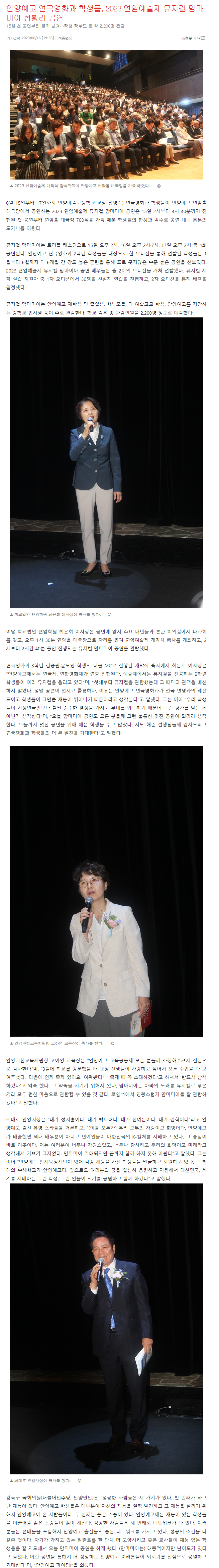 ¾È¾ç¿¹°í ¿¬±Ø¿µÈ­°ú Çлýµé, 2023 ¿¬¾Ï¿¹¼úÁ¦ ¹ÂÁöÄà ¸¾¸¶¹Ì¾Æ ¼ºÈ²¸® °ø¿¬