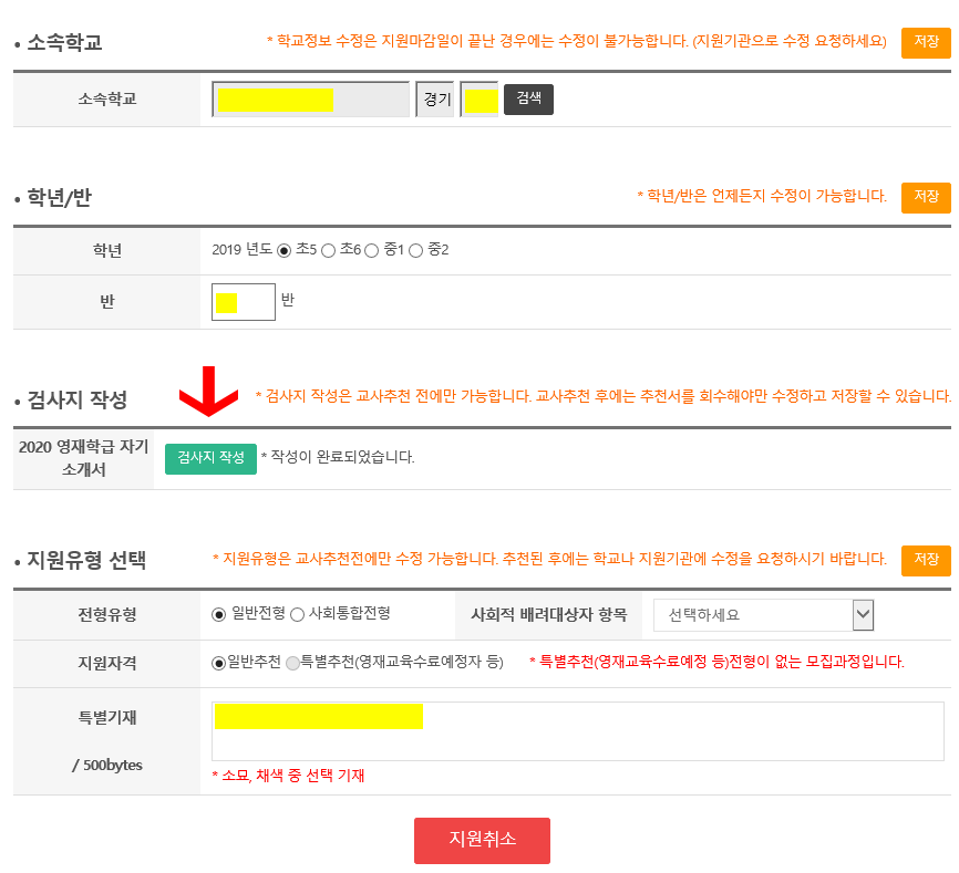 2020Çг⵵ ¿µÀçÇÐ±Þ ÀÚ±â¼Ò°³¼­ = Çлý °Ë»çÁö ÀÛ¼º
