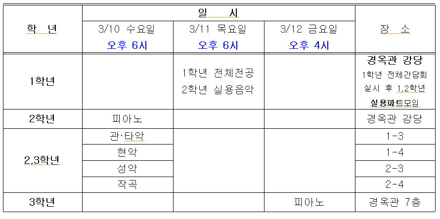 3¿ù 10ÀÏ[¼ö] - 3¿ù 12ÀÏ[±Ý] ÃÑ 3Àϰ£ À½¾Ç°ú Çкθ𠰣´ãȸ¸¦ ½Ç½ÃÇÏ·Á°í ÇÕ´Ï´Ù.